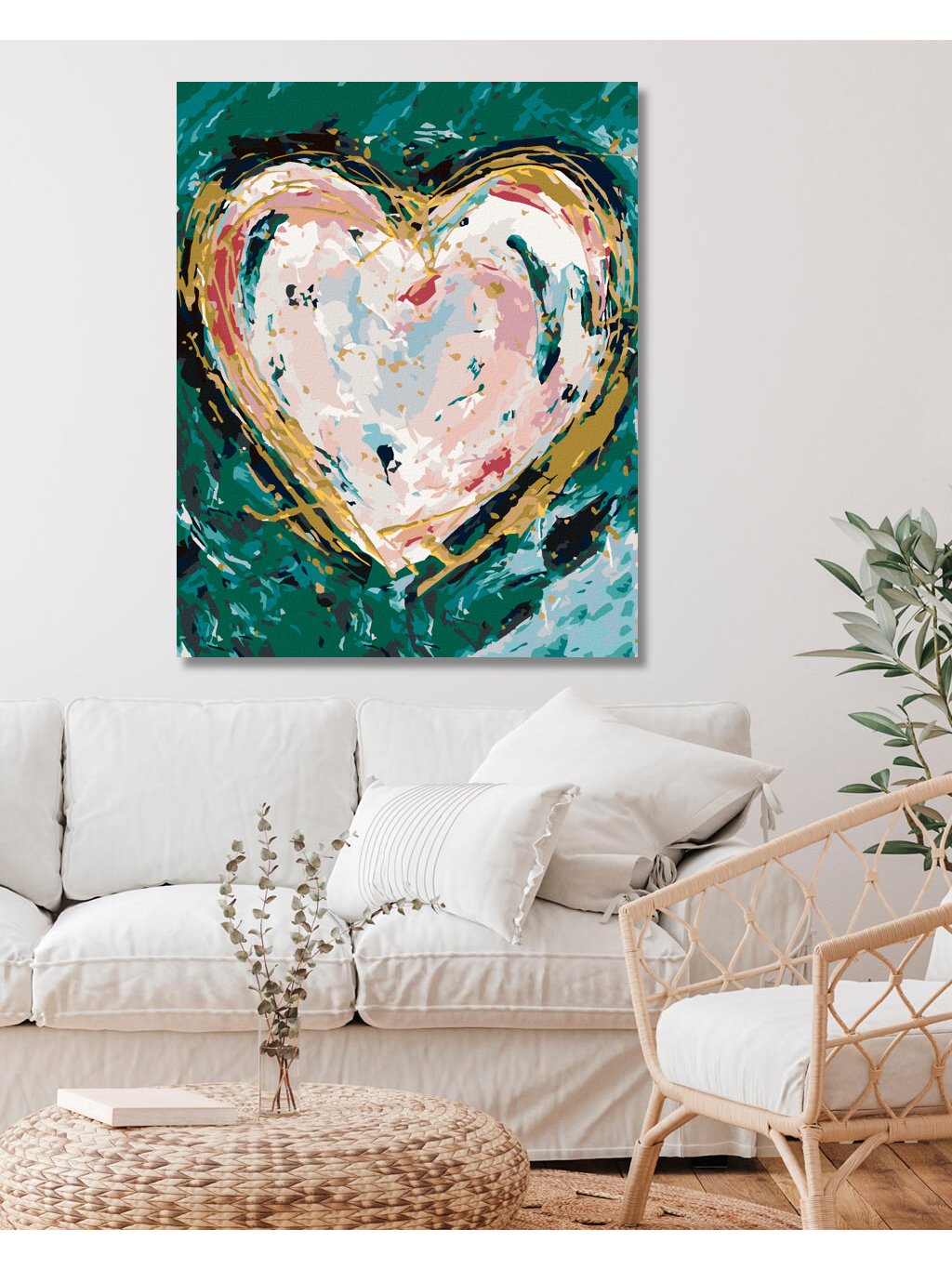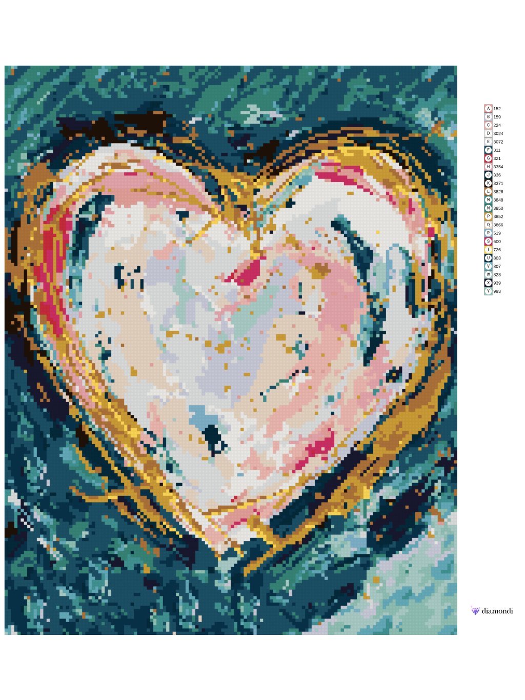 Diamantové malování - BAREVNÉ SRDCE NA ZELENÉM POZADÍ (HALEY BUSH)
