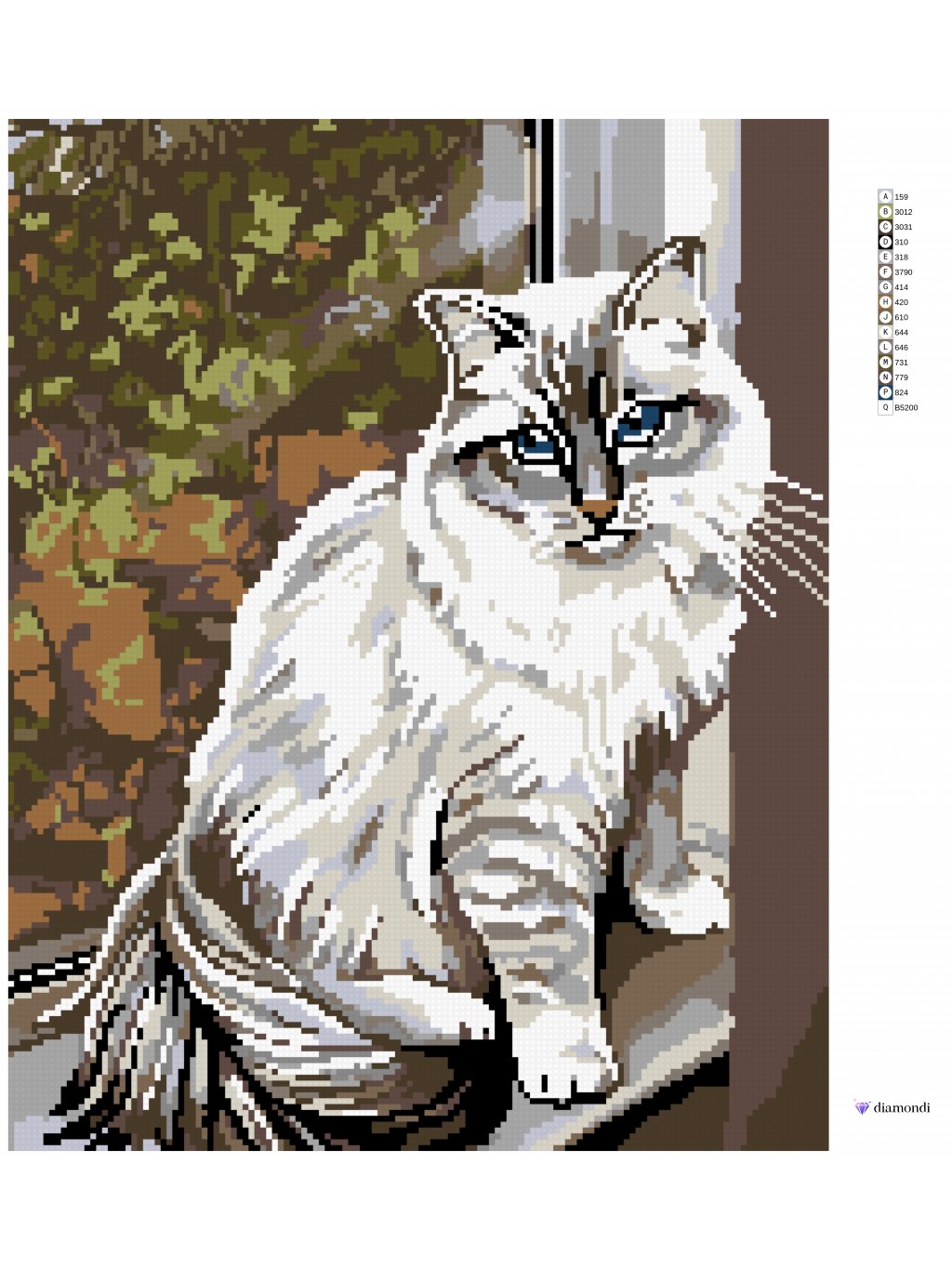 Diamantové malování - BÍLÁ KOČKA V OKNĚ