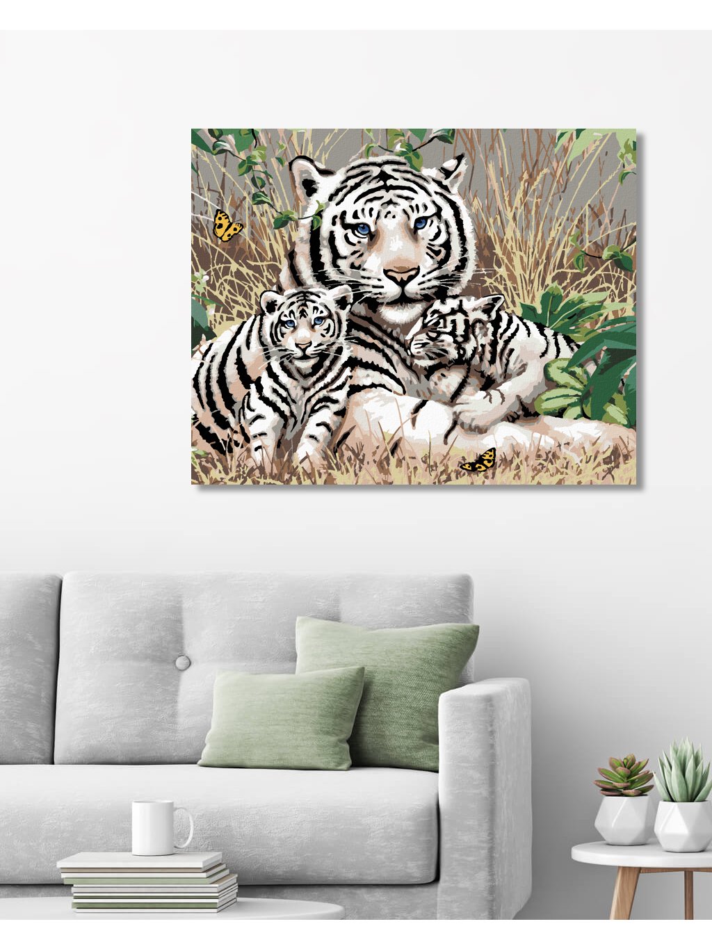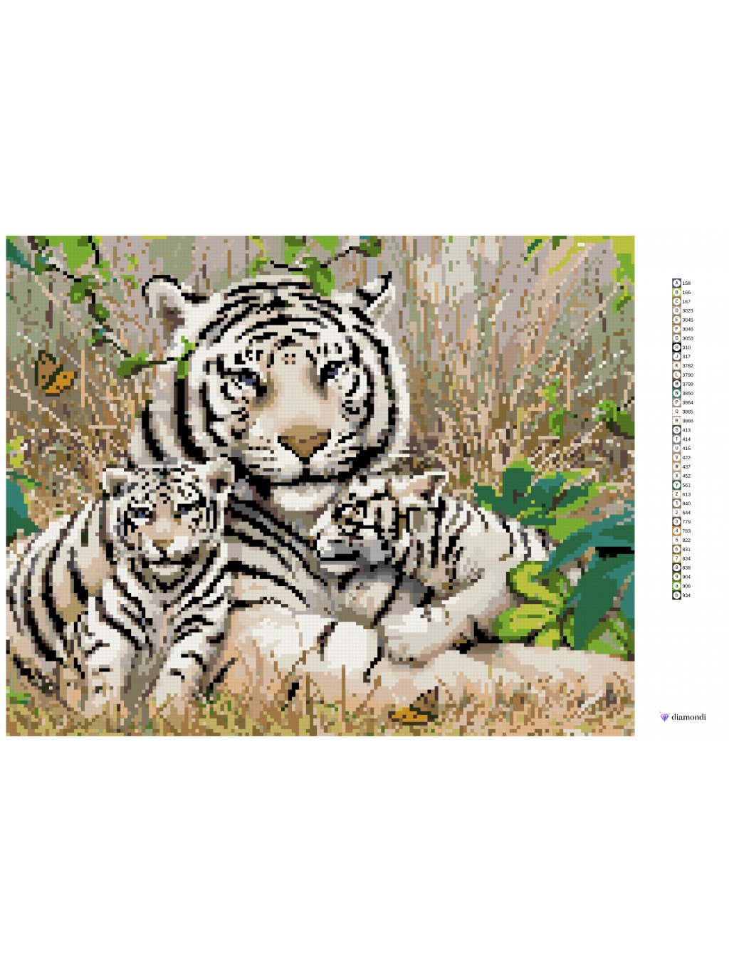 Diamantové malování - BÍLÝ TYGR A MLÁĎATA V TRÁVĚ (HOWARD ROBINSON)