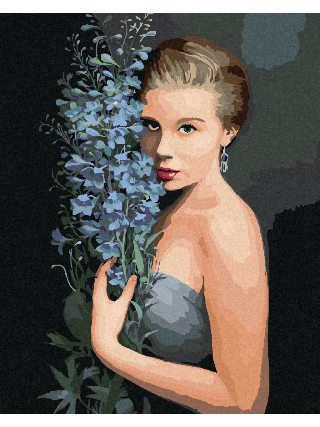 Diamantové malování - BLONĎATÁ ŽENA A MODRÉ KVĚTINY (PIETER WAGEMANS)