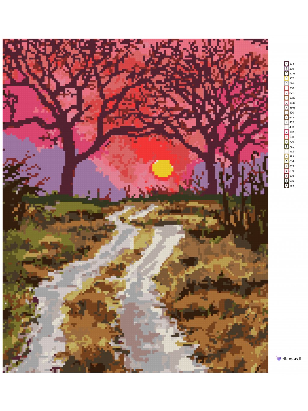 Diamantové malování - CESTIČKA NA PODZIM A ZÁPAD SLUNCE