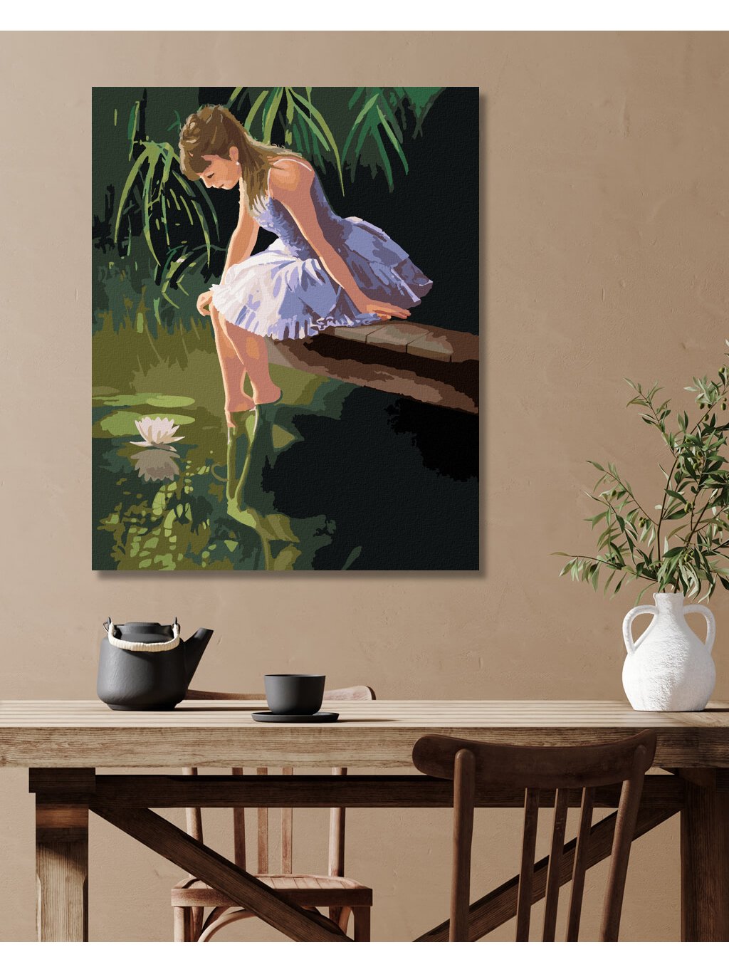 Diamantové malování - DÍVKA SEDÍCÍ U RYBNÍKA A LEKNÍN (PIETER WAGEMANS)