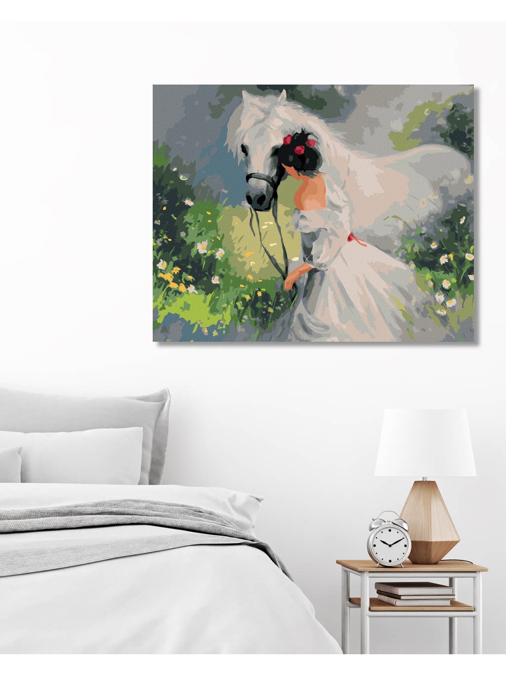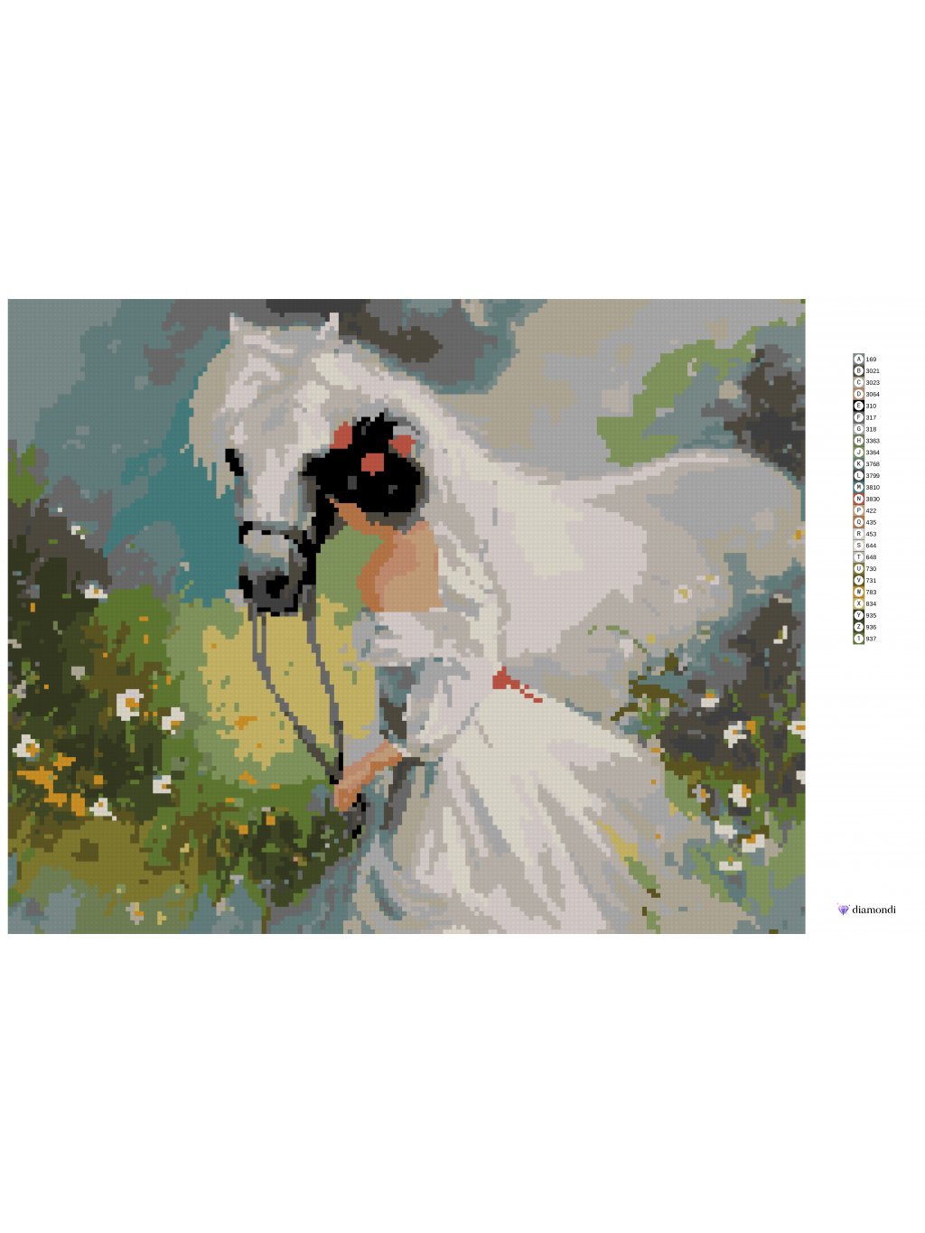 Diamantové malování - DÍVKA V BÍLÝCH ŠATECH A KŮŇ