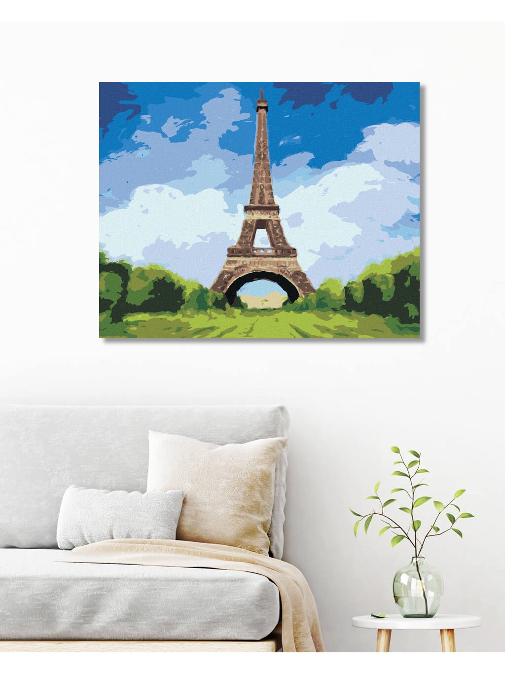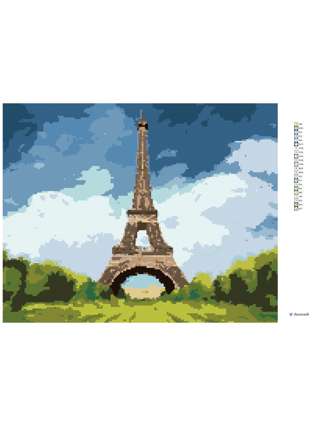 Diamantové malování - EIFFELOVA VĚŽ A JASNÁ MODRÁ OBLOHA
