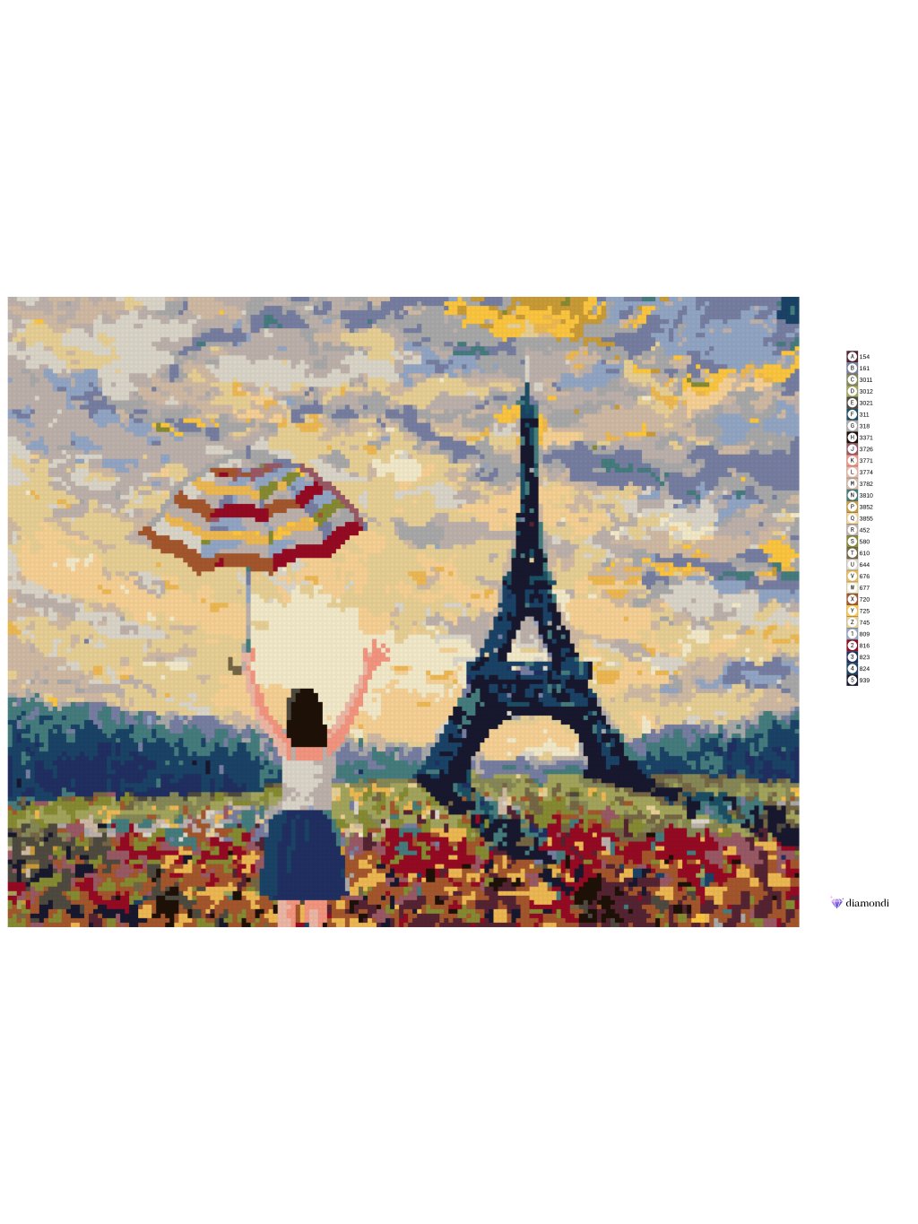 Diamantové malování - EIFFELOVA VĚŽ A ŽENA S DEŠTNÍKEM