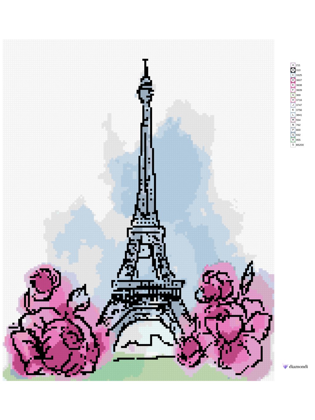 Diamantové malování - EIFFELOVA VĚŽ V PAŘÍŽI S RŮŽOVÝMI KVĚTINAMI