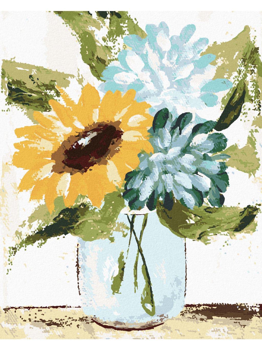 Diamantové malování - HORTENZIE A SLUNEČNICE VE VÁZE (HALEY BUSH)
