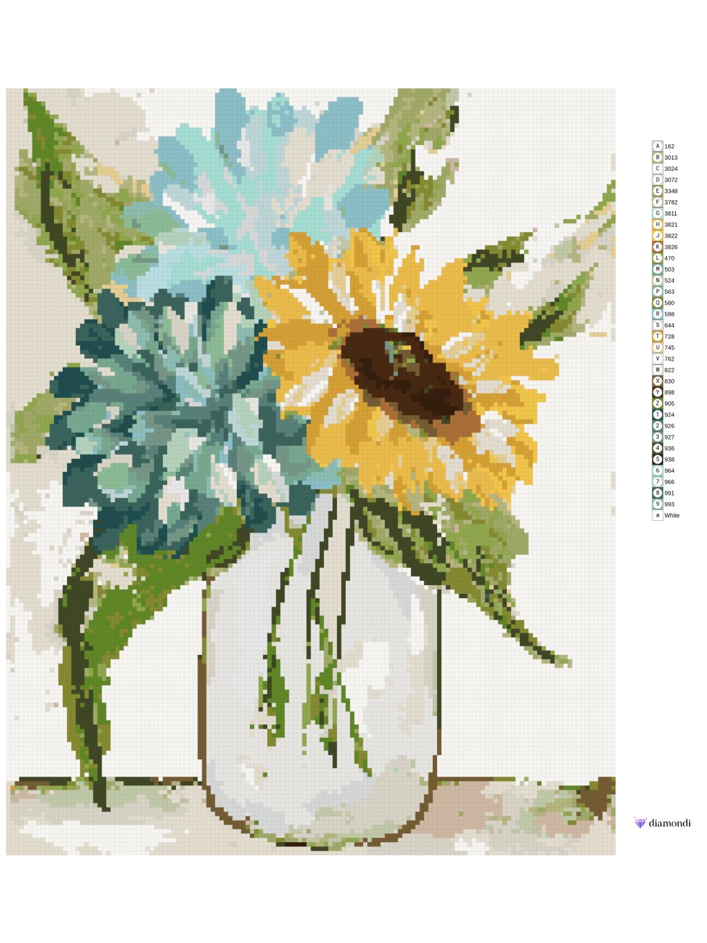 Diamantové malování - HORTENZIE A SLUNEČNICE VE VÁZE 2 (HALEY BUSH)
