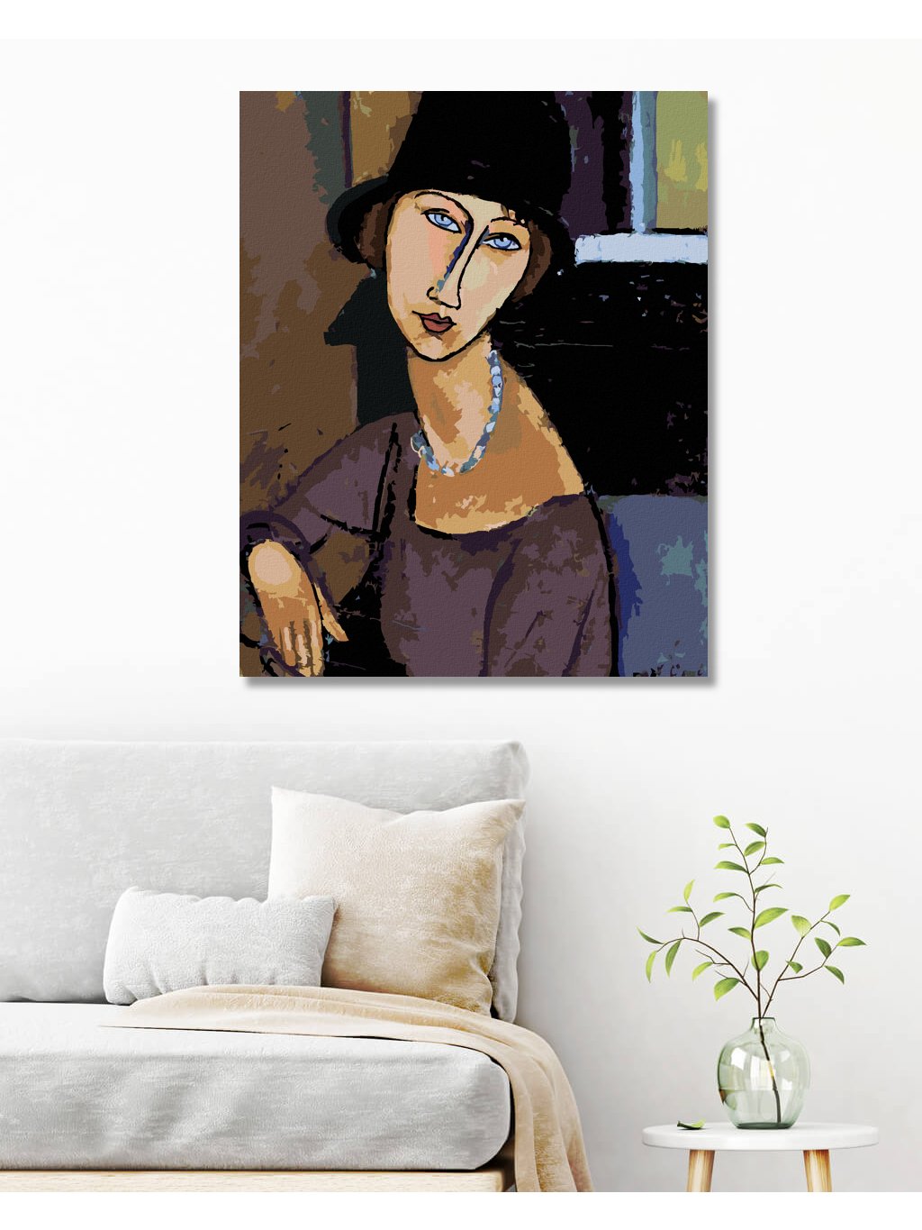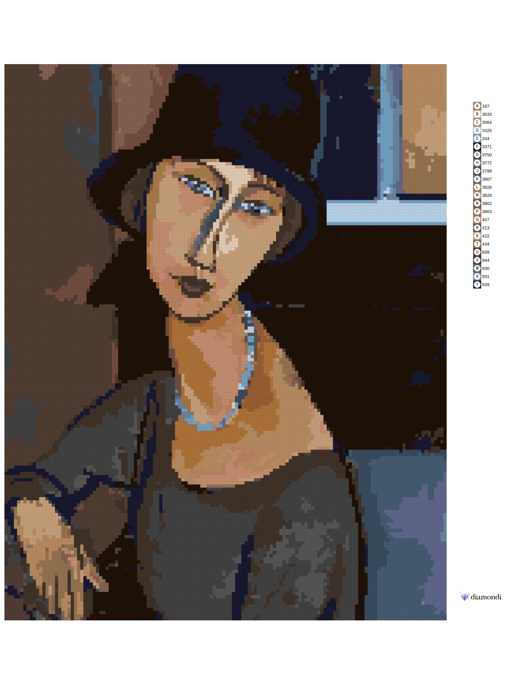 Diamantové malování - JEANNE HÉBUTERNE S KLOBOUKEM A NÁHRDELNÍKEM (AMEDEO MODIGLIANI)