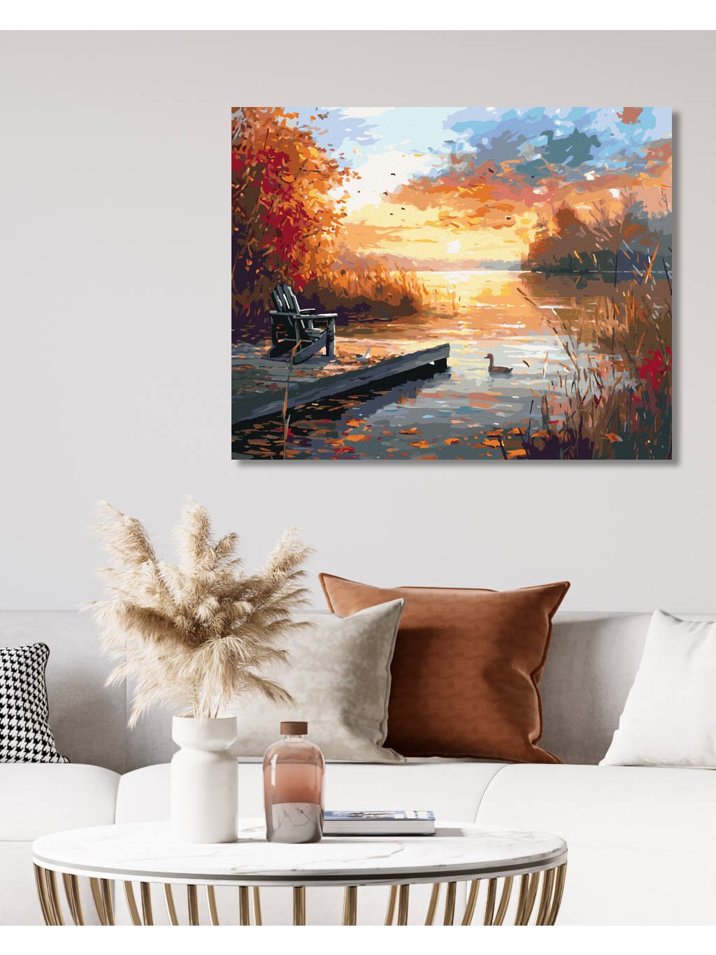 Diamantové malování - KACHNA V RÁKOSÍ, MOLO A ZÁPAD SLUNCE NA PODZIM