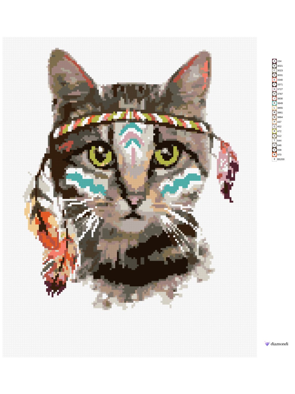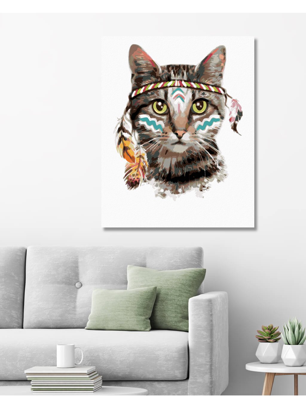 Diamantové malování - KOČKA S INDIÁNSKOU ČELENKOU