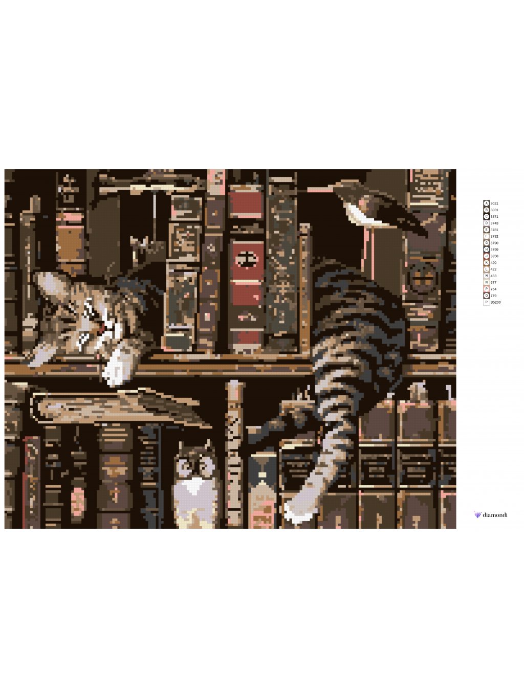 Diamantové malování - KOCOUR V KNIHOVNĚ