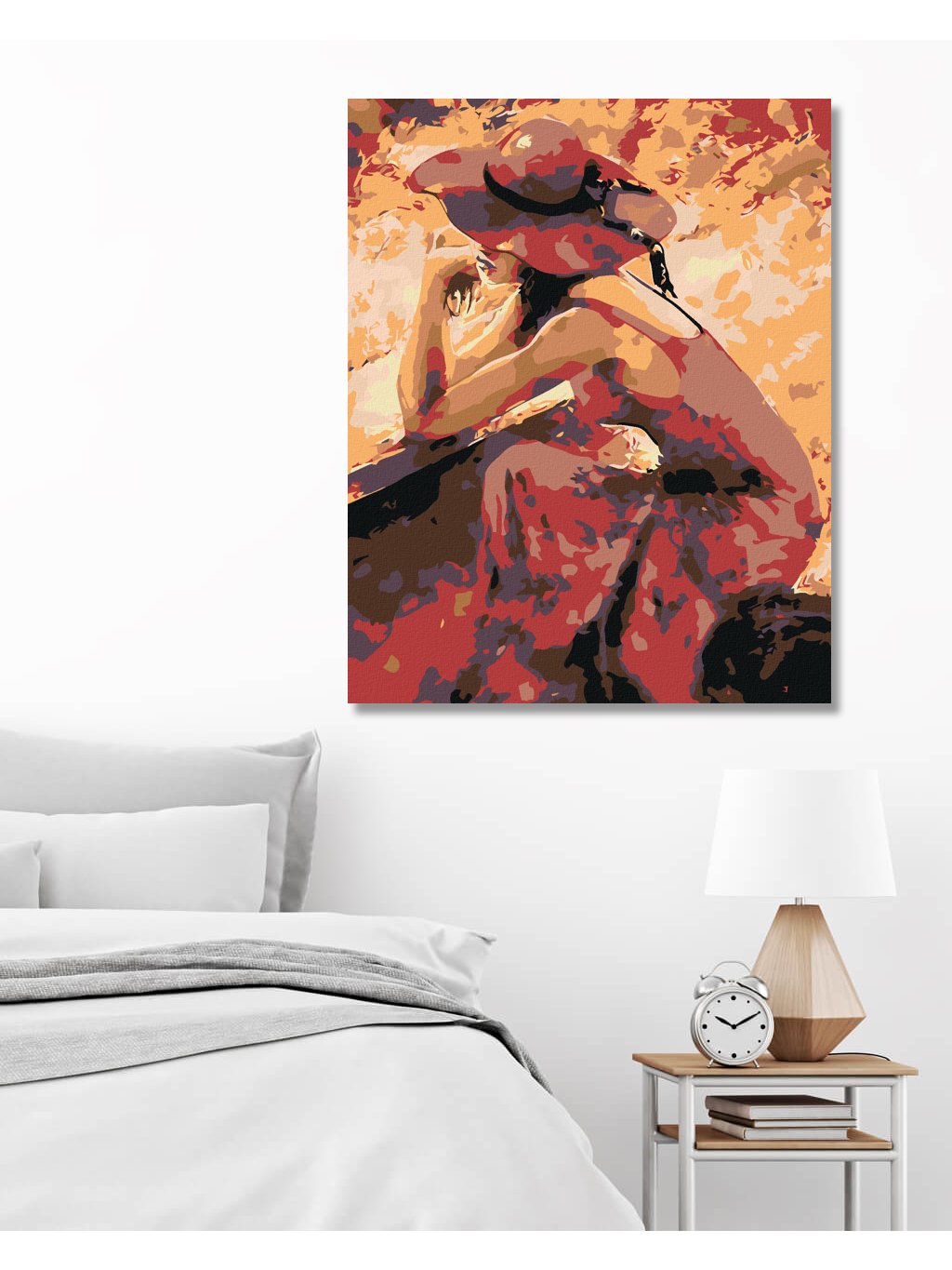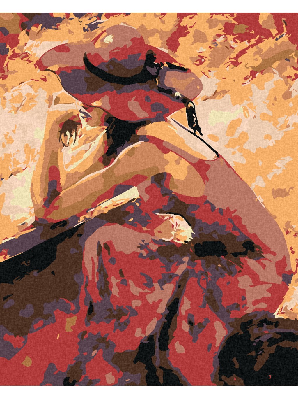 Diamantové malování - KRÁSNÁ ZASNĚNÁ ŽENA V ČERVENÉM