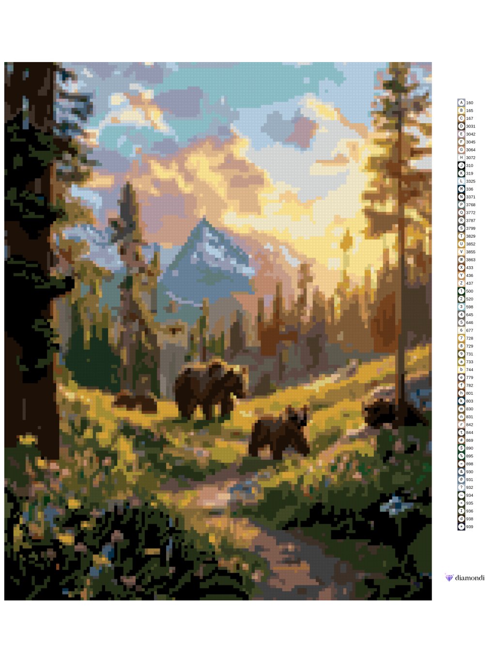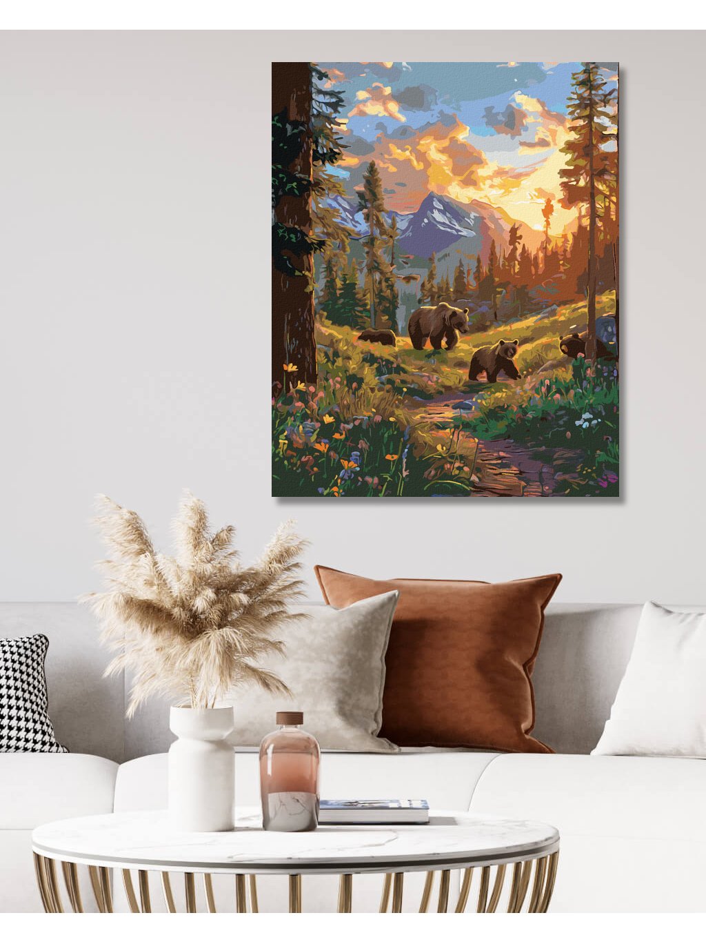 Diamantové malování - MEDVĚD S MLÁĎATY NA PROCHÁZCE A ZÁPAD SLUNCE