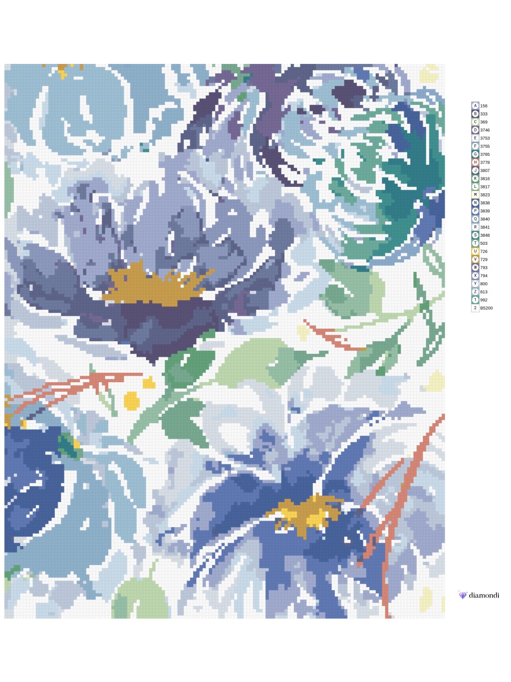 Diamantové malování - MODRÉ KVĚTY A LISTY (ALEXANDRIA GILBERT)