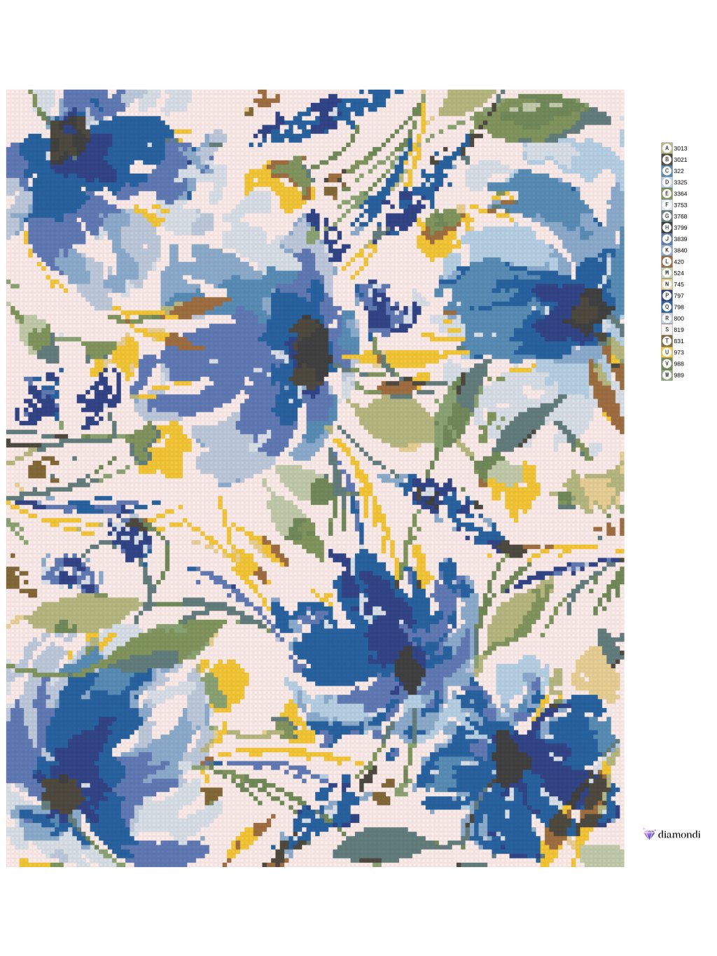 Diamantové malování - MODRÉ KVĚTY MEZI LISTY (ALEXANDRIA GILBERT)