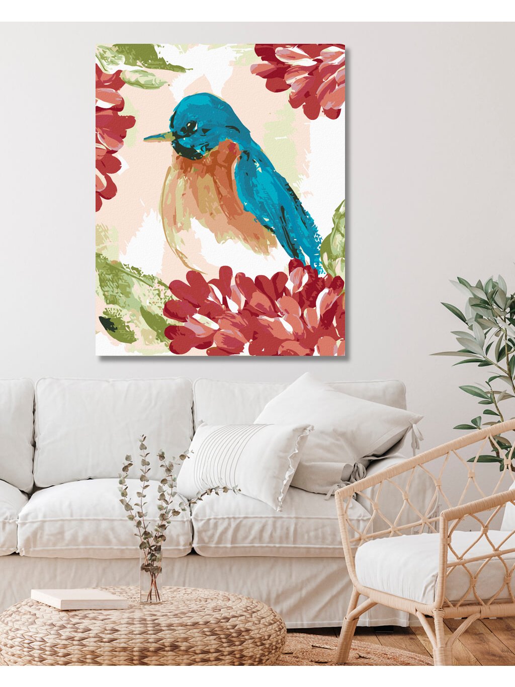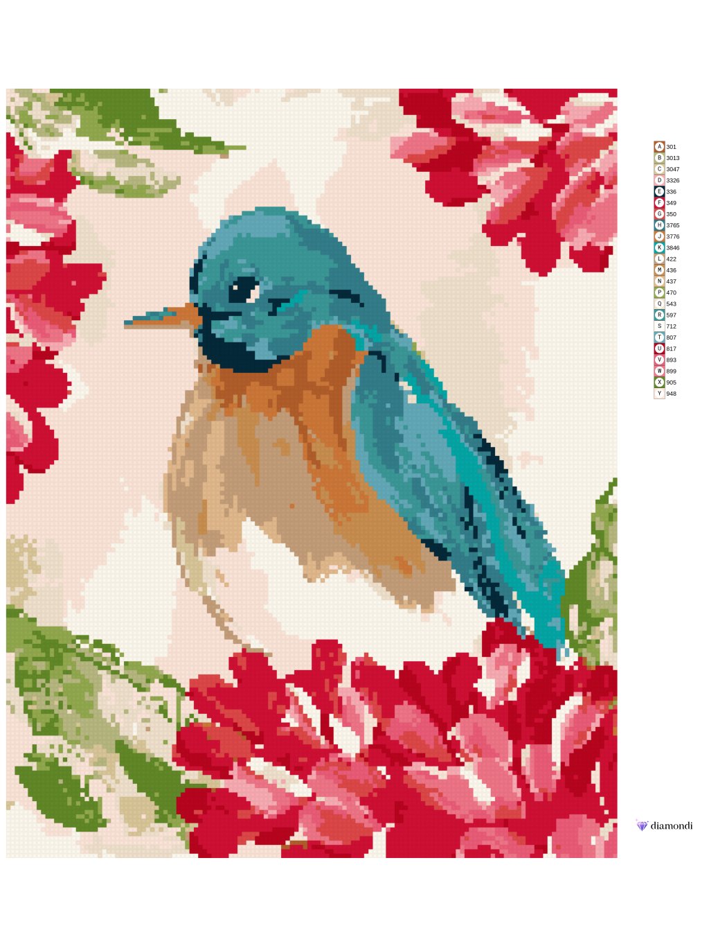 Diamantové malování - MODRÝ PTÁK V KVĚTINÁCH (HALEY BUSH)