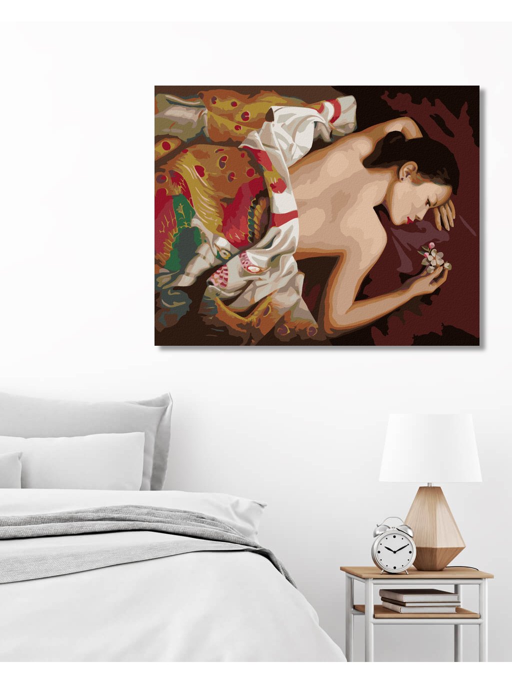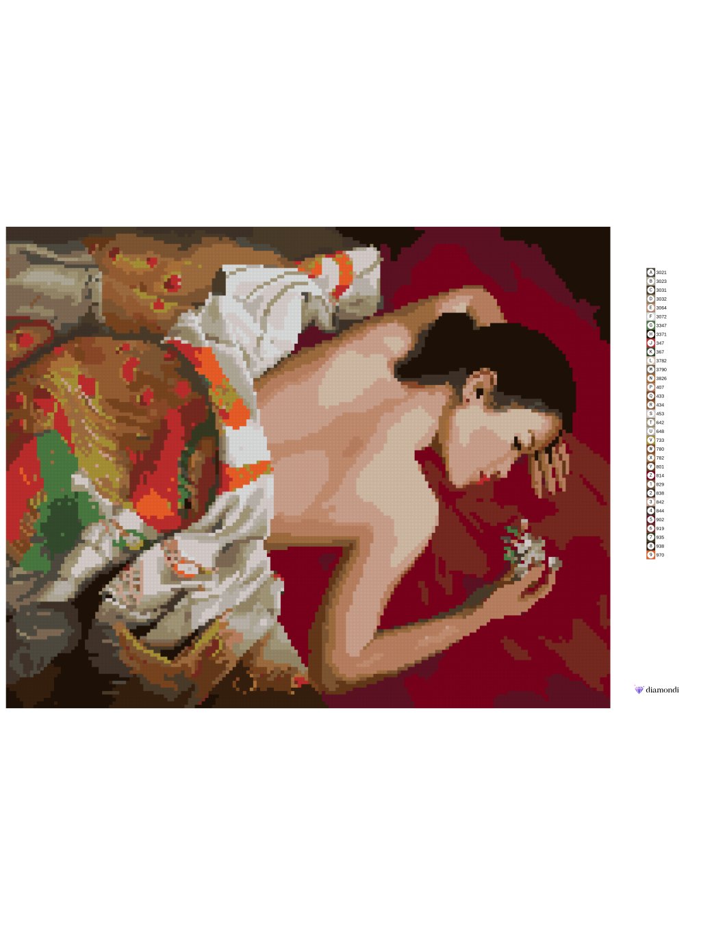Diamantové malování - NAHÁ ŽENA POD PŘEHOZEM S KVĚTINOU (PIETER WAGEMANS)