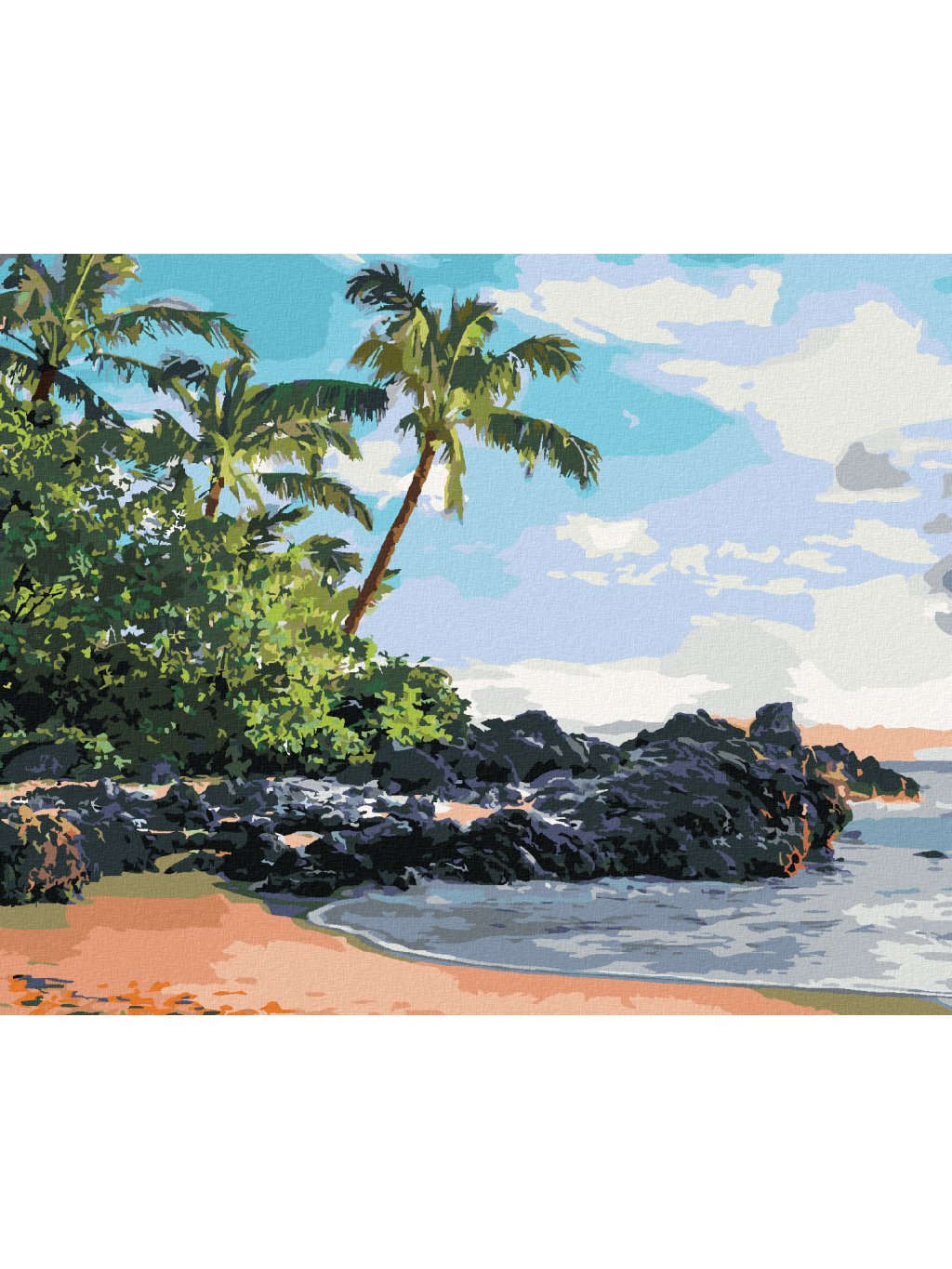 Diamantové malování - POBŘEŽÍ, PALMY A ZÁPAD SLUNCE (TED DAVIS)