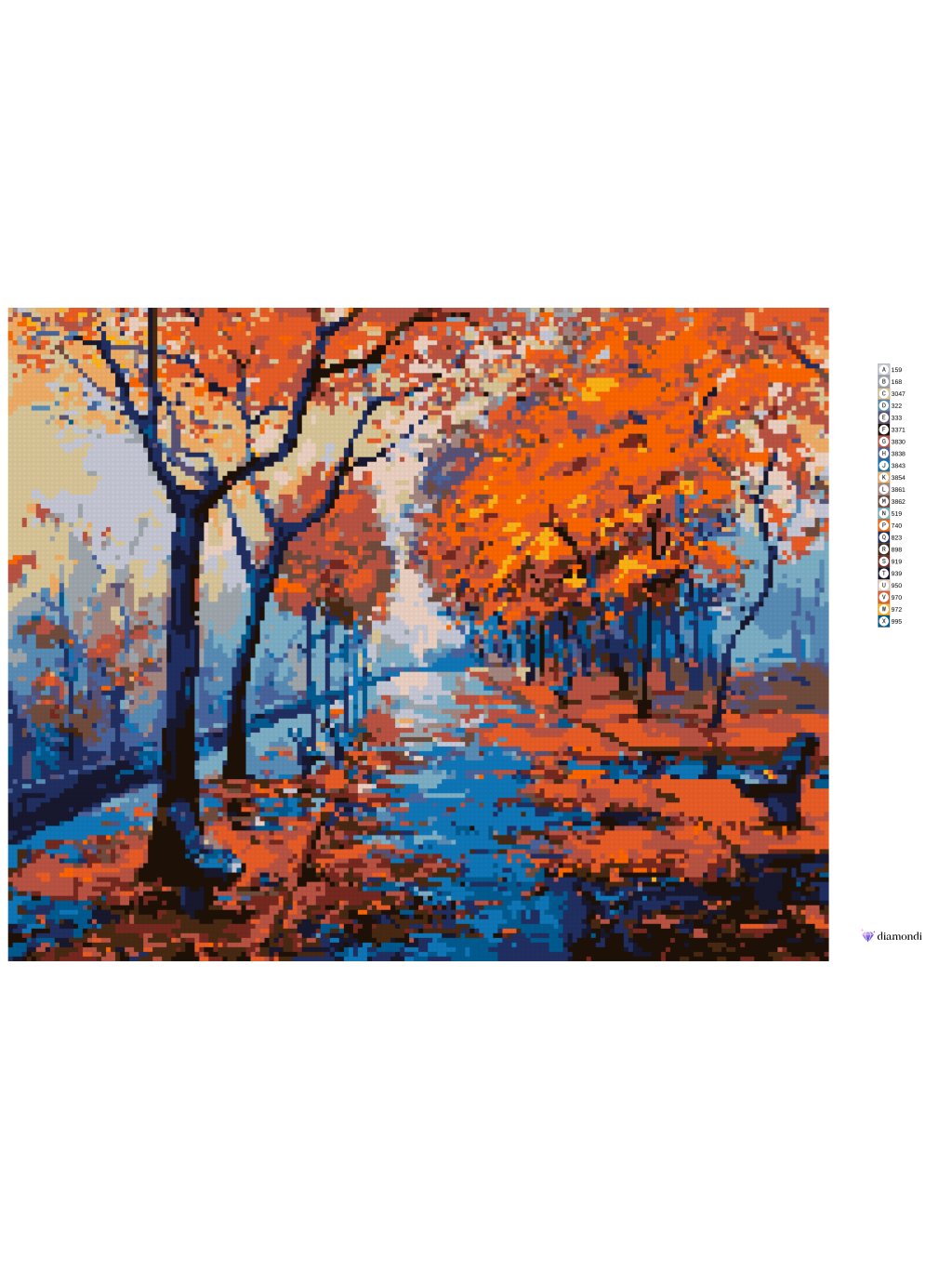 Diamantové malování - PODZIMNÍ LESOPARK S PRÁZDNÝMI LAVIČKAMI