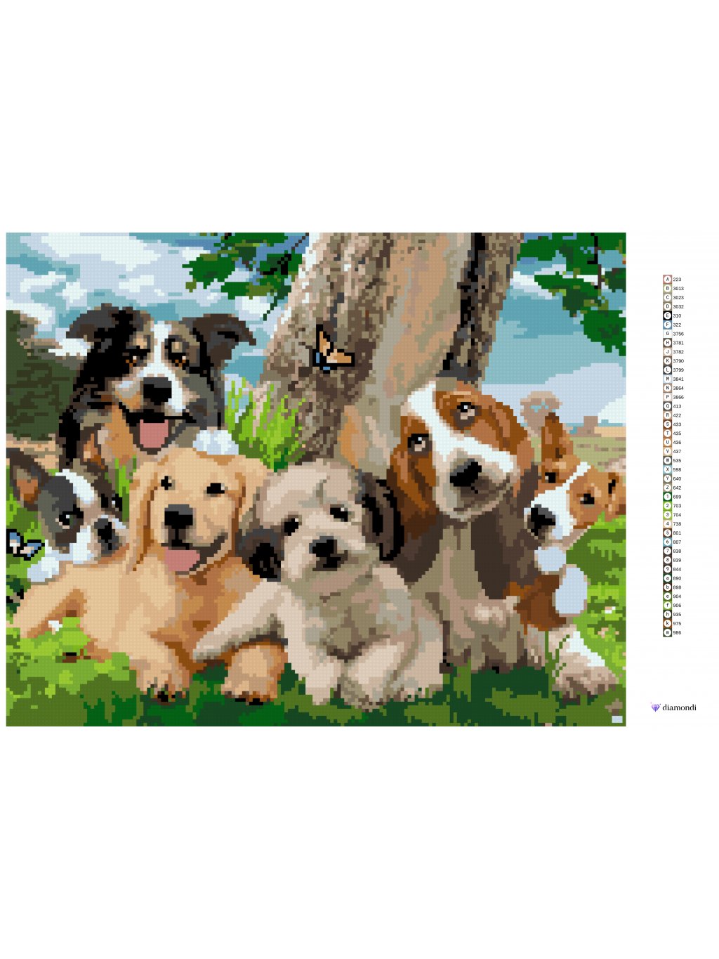 Diamantové malování - PSI U STROMU NA LOUCE (HOWARD ROBINSON)