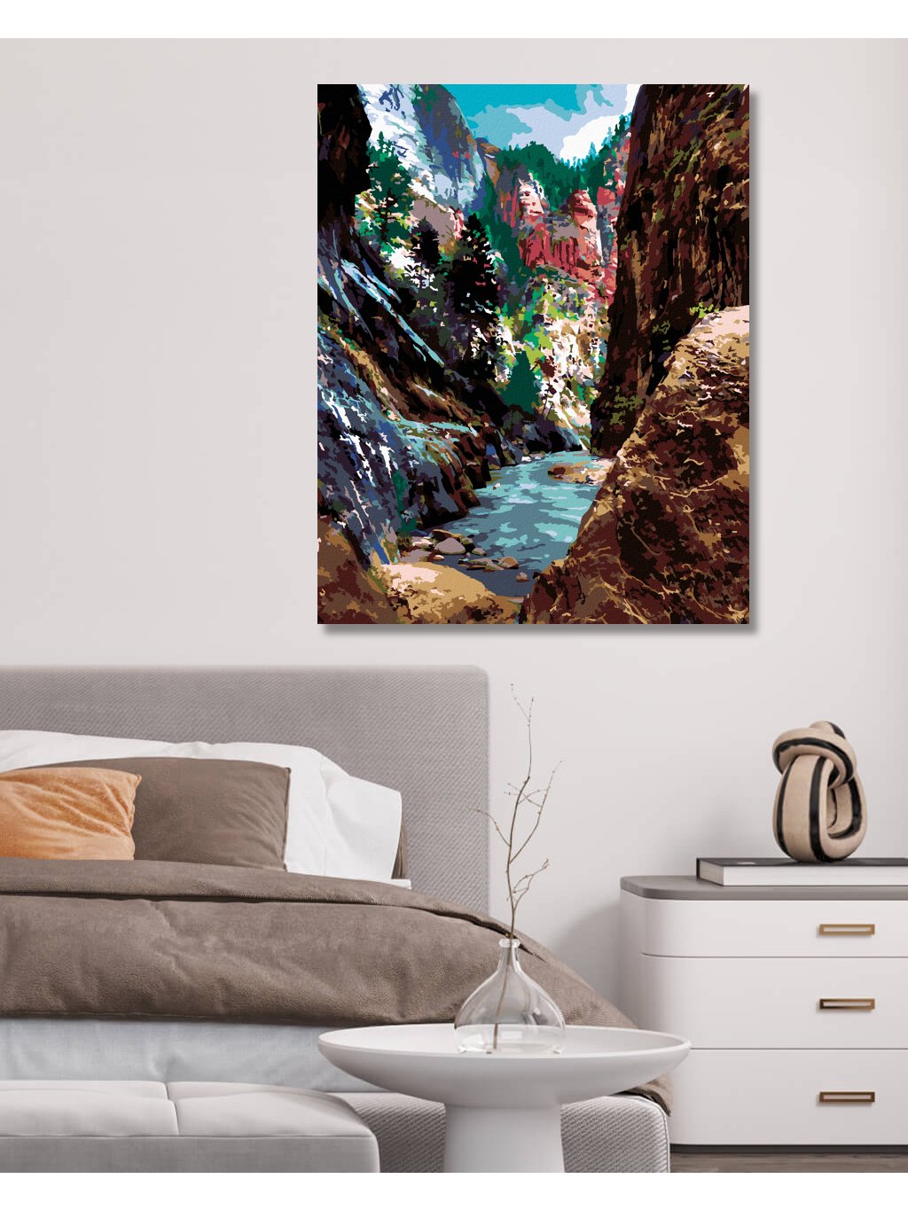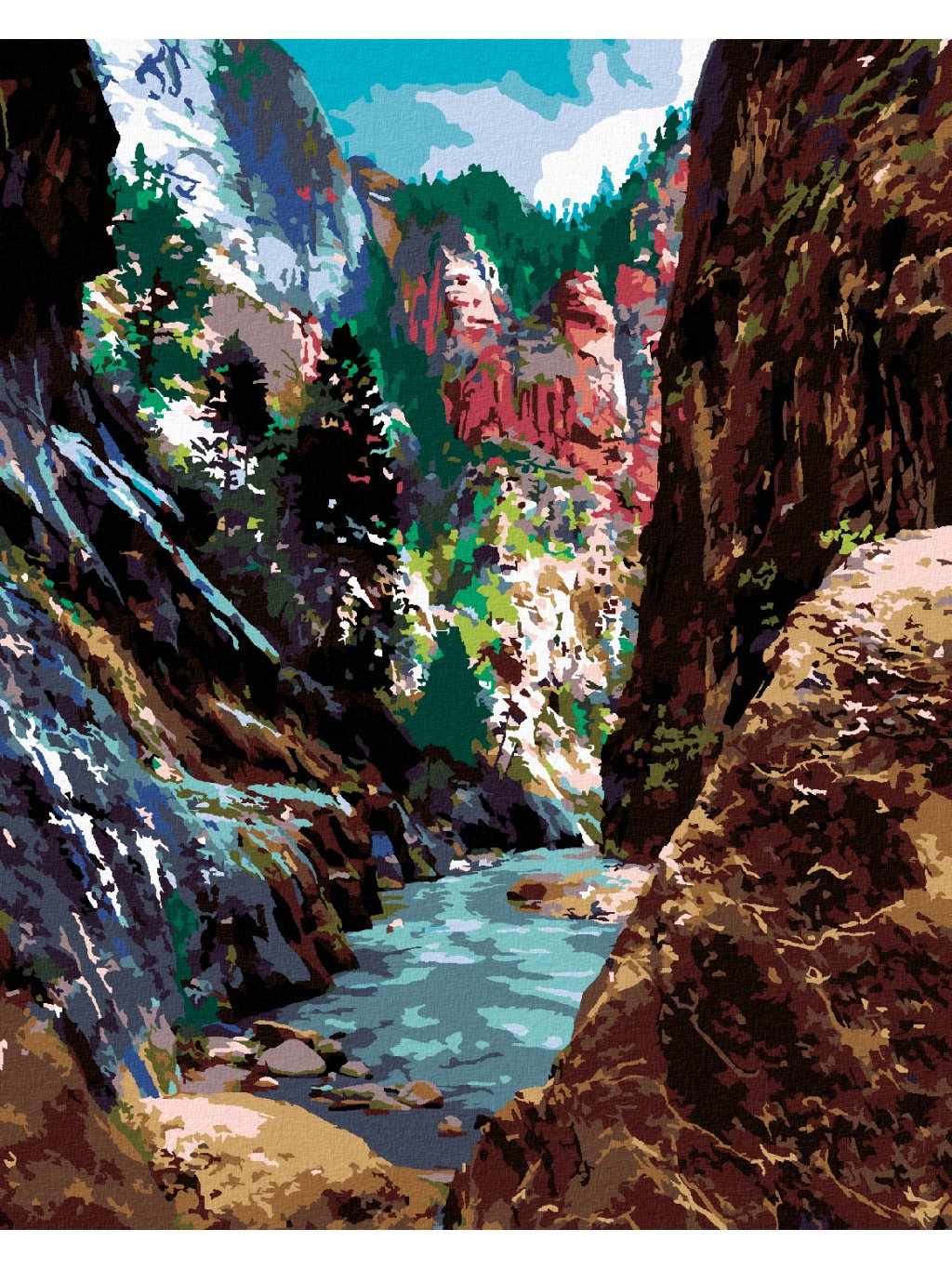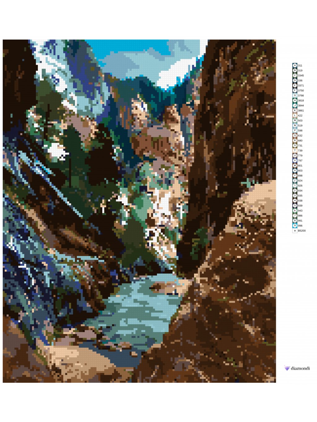 Diamantové malování - ŘEKA A STROMY V KAŇONU (TED DAVIS)