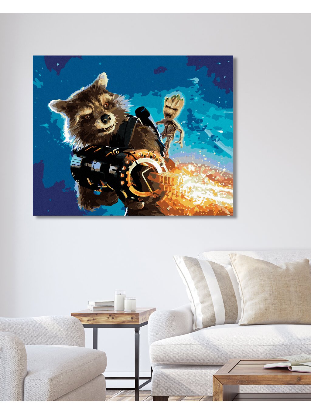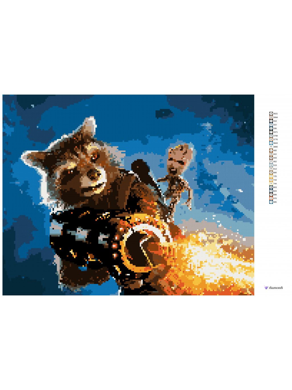 Diamantové malování - ROCKET A GROOT V BOJI (STRÁŽCI GALAXIE)