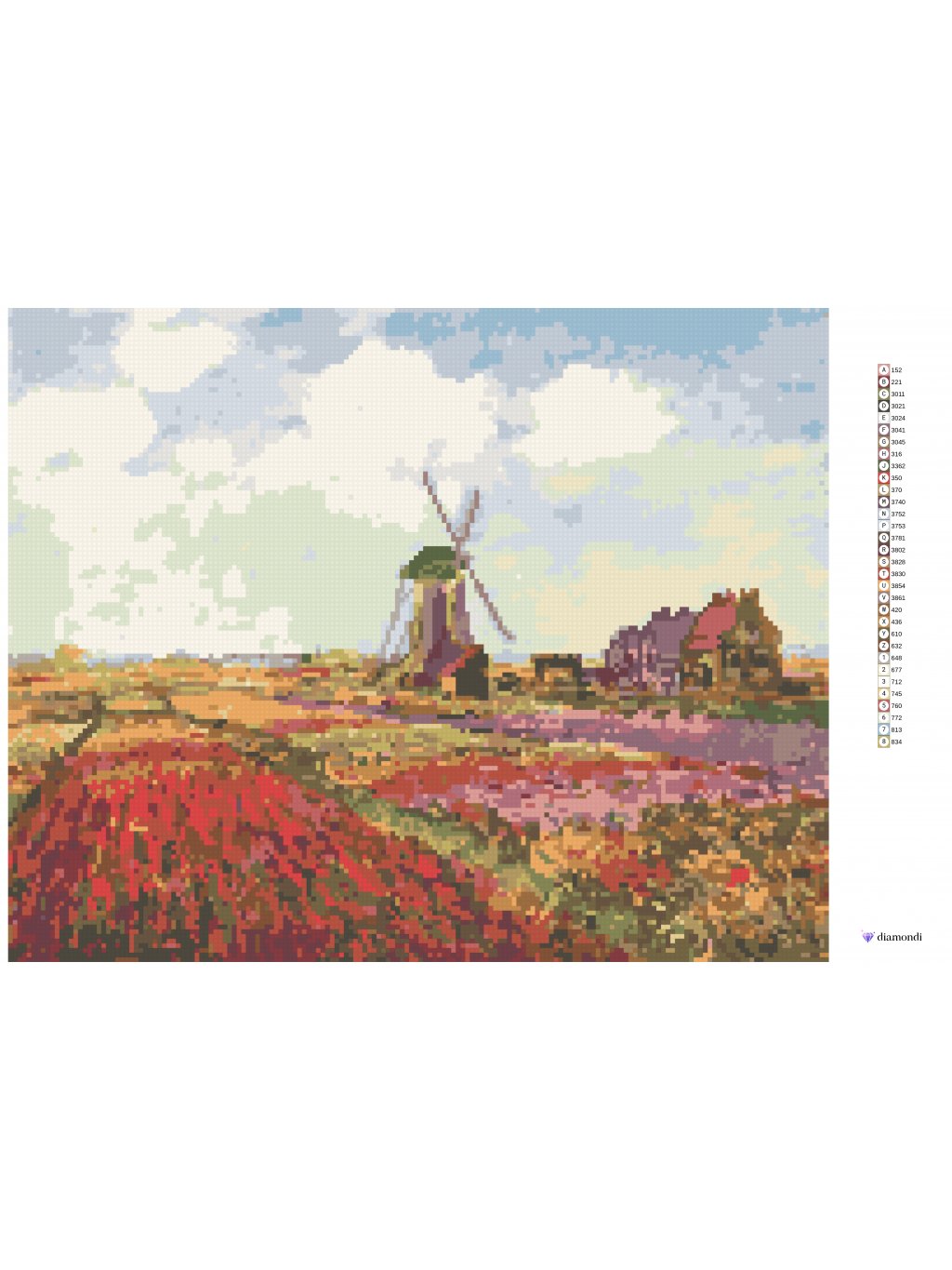 Diamantové malování - TULIPÁNOVÁ POLE V HOLANDSKU (CLAUDE MONET)