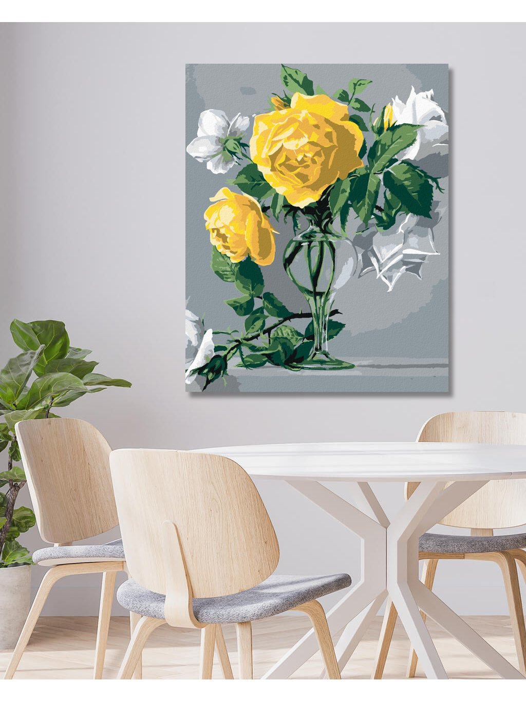 Diamantové malování - ZÁTIŠÍ BÍLÉ A ŽLUTÉ RŮŽE VE SKLENĚNÉ VÁZE (PIETER WAGEMANS)