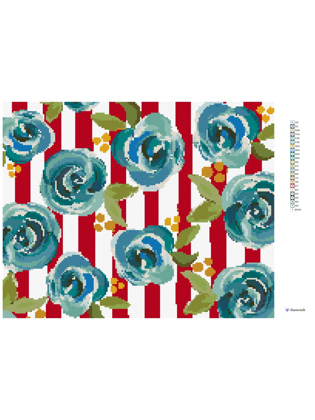 Diamantové malování - ZÁTIŠÍ MODRÉ KVĚTINY NA BÍLOČERVENÉM POZADÍ (HALEY BUSH)