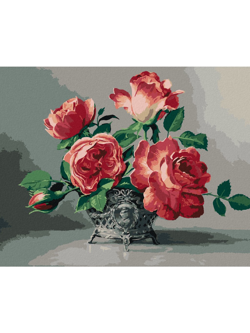 Diamantové malování - ZÁTIŠÍ RŮŽOVÉ RŮŽE VE ZDOBENÉ VÁZE (PIETER WAGEMANS)