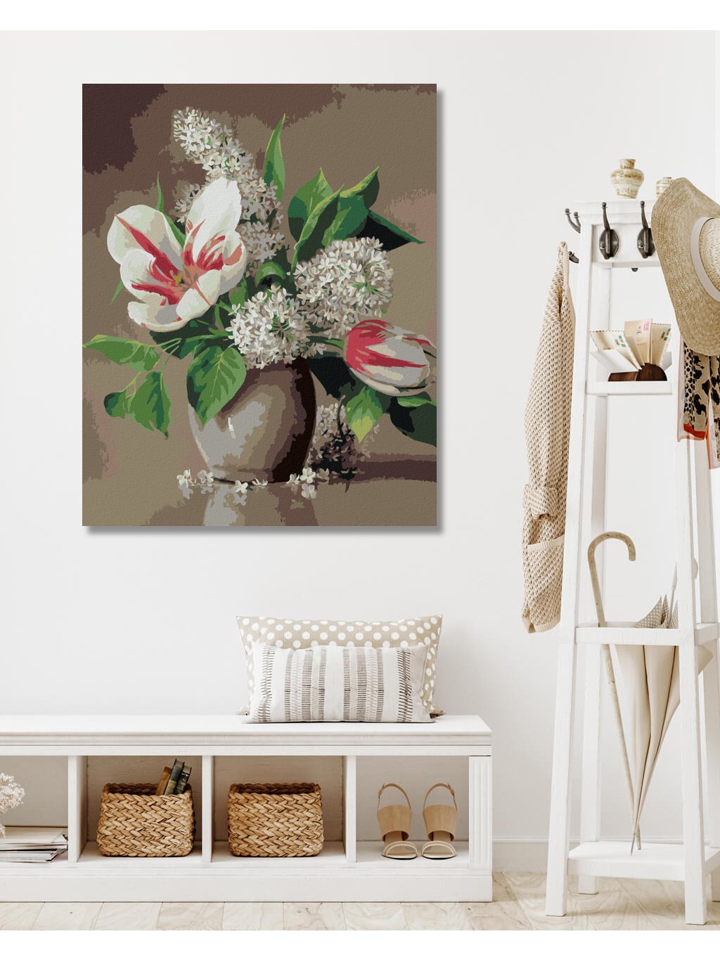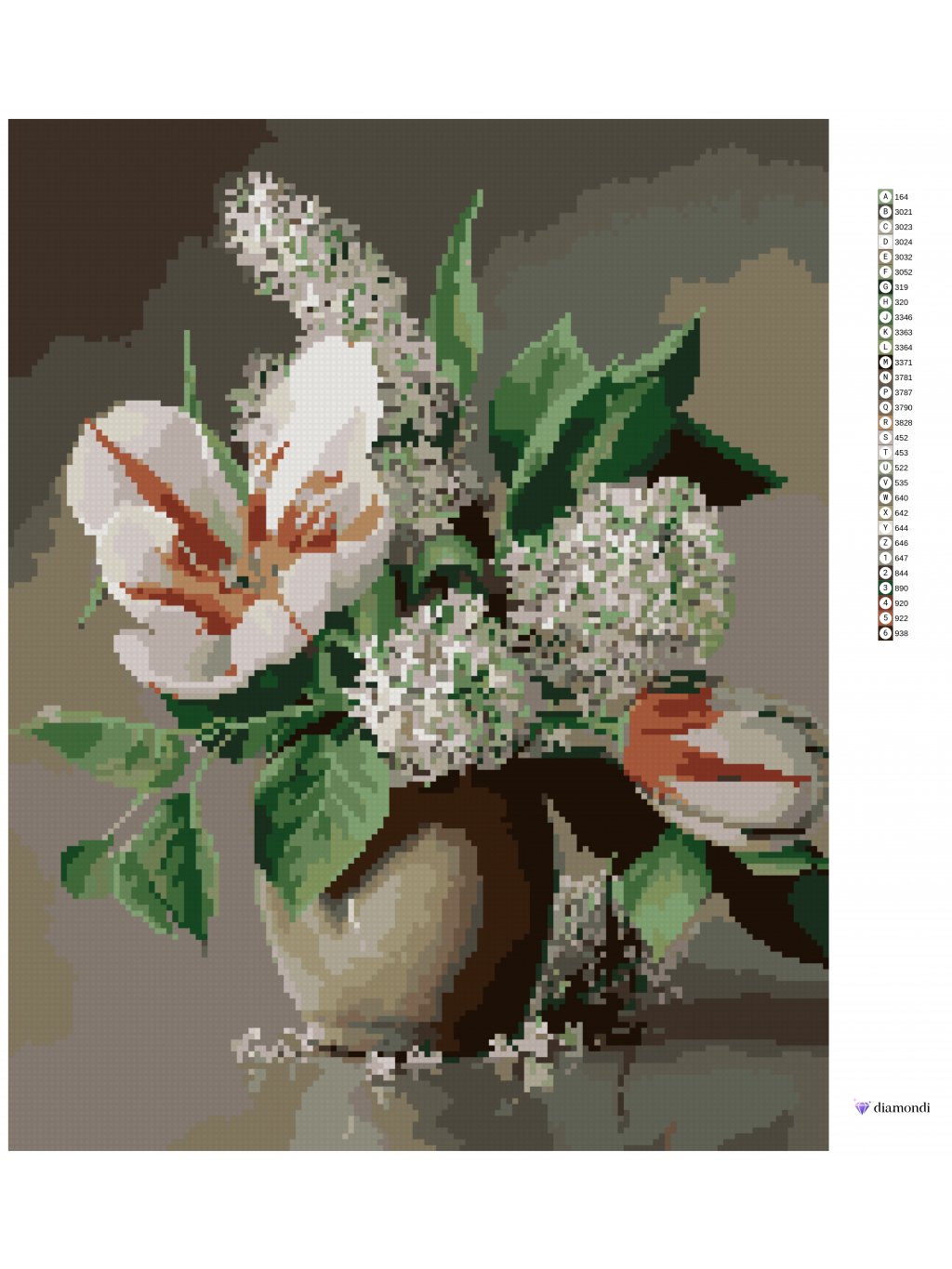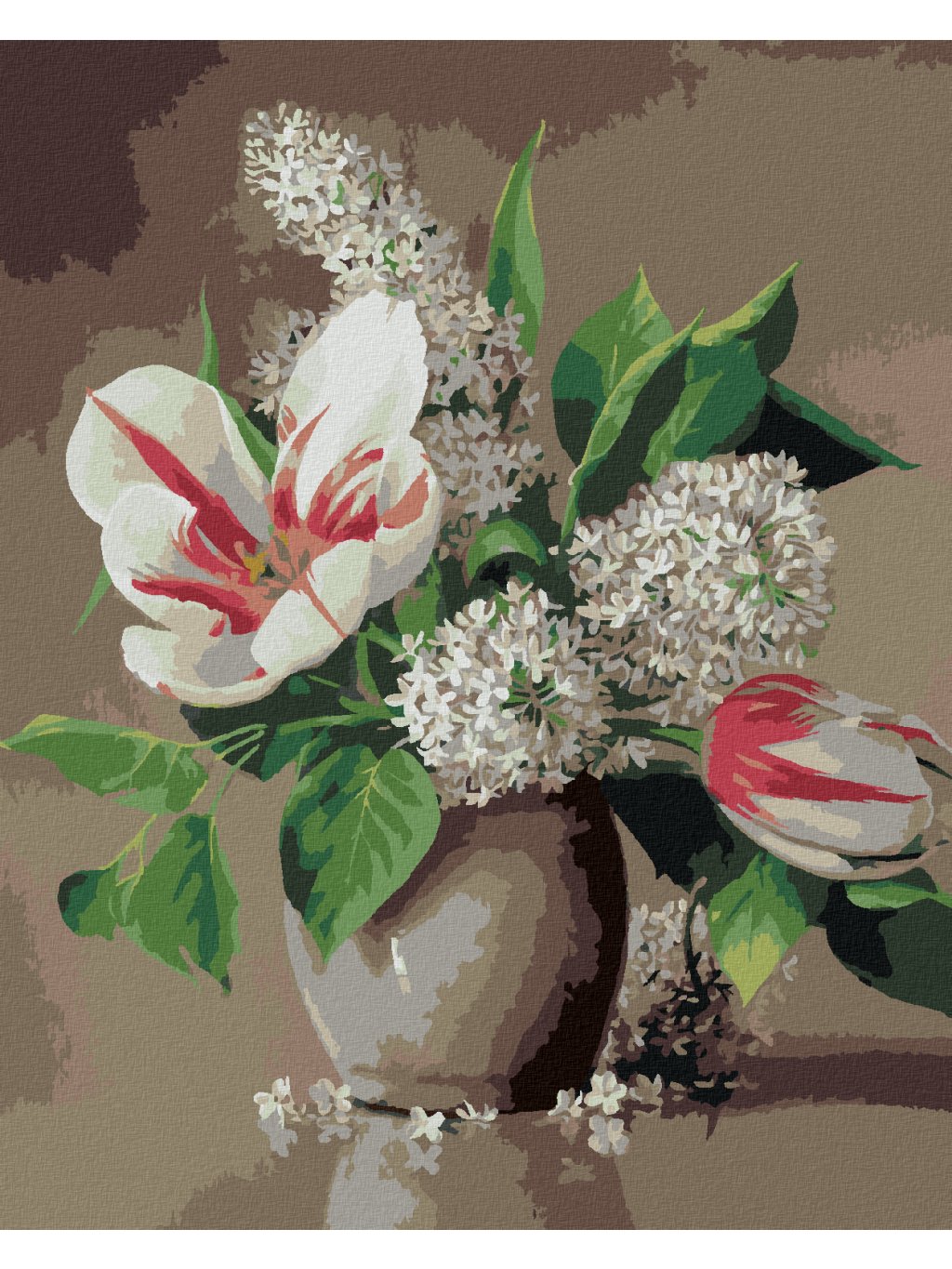 Diamantové malování - ZÁTIŠÍ TULIPÁN A ŠEŘÍK V KERAMICKÉM KVĚTINÁČI (PIETER WAGEMANS)