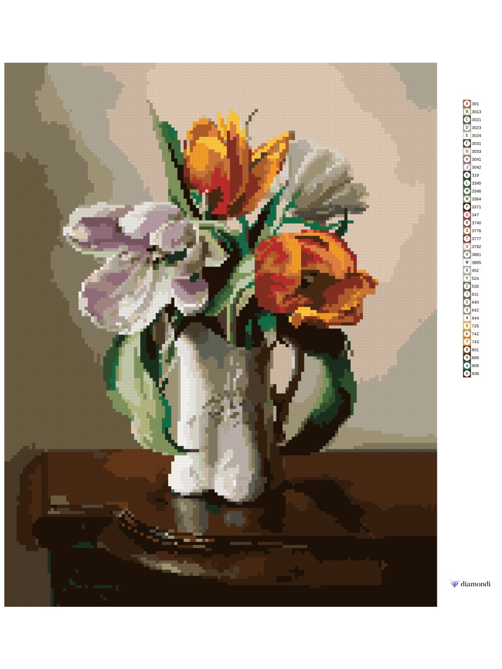 Diamantové malování - ZÁTIŠÍ TULIPÁNY V PORCELÁNOVÉ VÁZE NA STOLE (PIETER WAGEMANS)