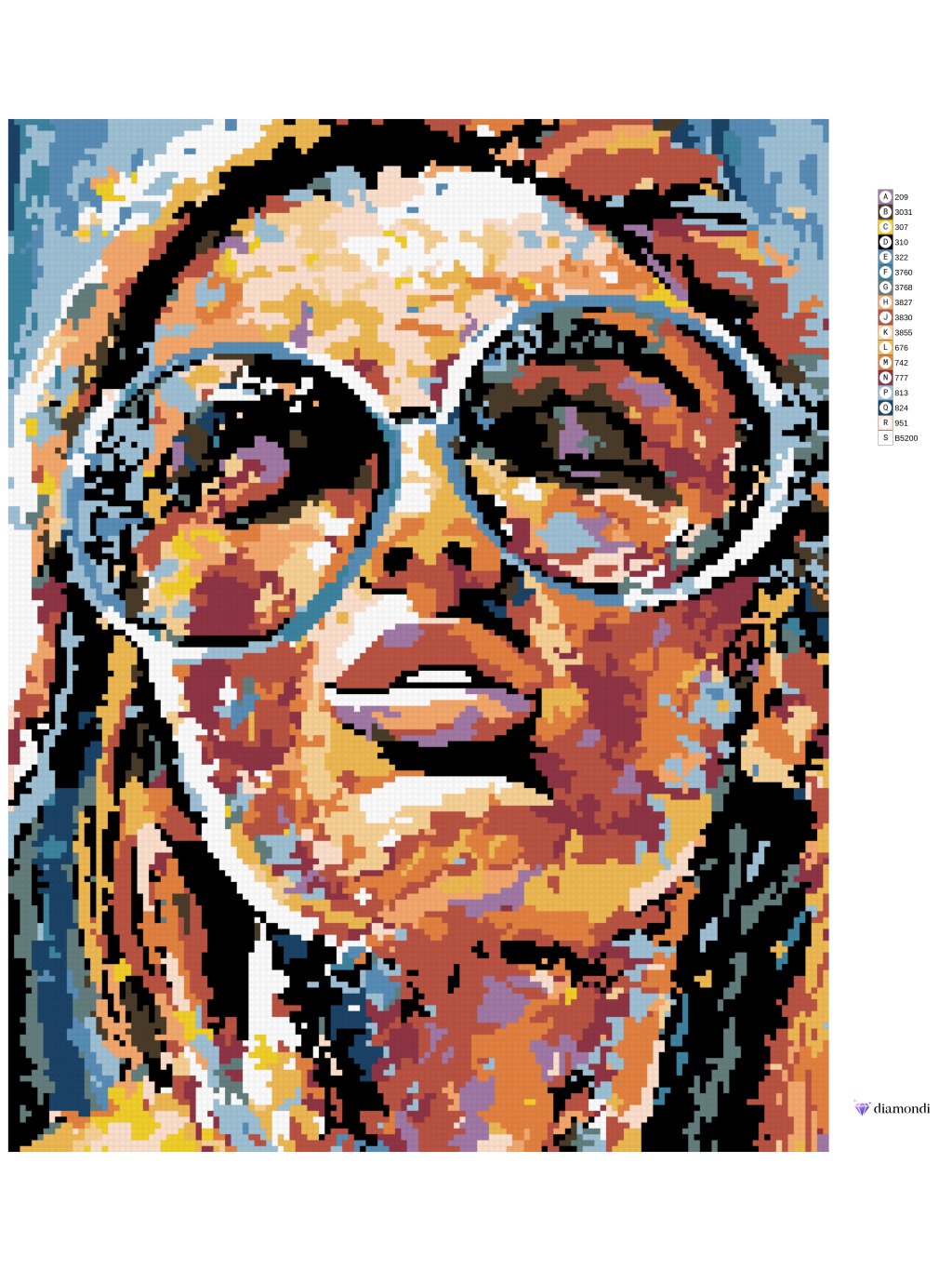 Diamantové malování - ŽENA V BARVÁCH A KULATÉ BRÝLE