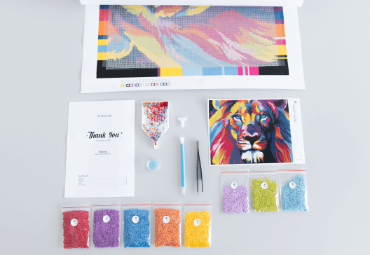 - Než začnete tvořit obraz diamantového malování, připravte si všechny položky ze sady a ukliďte si pracovní prostor.