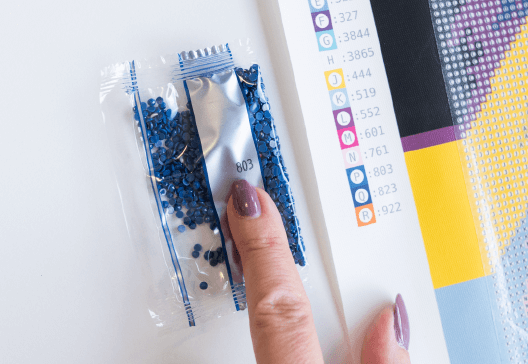 ![]() Připravte si sadu diamantového malování. Součásti sady jsou malé sáčky s diamanty. |