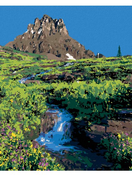 Diamantové malování - HORA A ŘEKA MEZI KVĚTY (TED DAVIS)